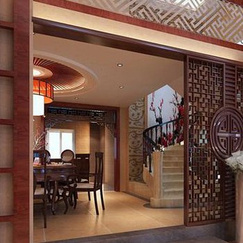 中式風(fēng)格酒店軟裝,以中式傳統(tǒng)紅黑色為基調(diào),椅子,吊頂,背景墻門的設(shè)計(jì)運(yùn)用到中式回形紋和中式花朵紋樣,結(jié)合香檳金的色彩,沉穩(wěn)中彰顯大氣與古韻,又不失現(xiàn)代感;圓形的桌子搭配金色和紅色布藝,紅色的椅子搭配米色布藝,這兩種搭配都是在中式色彩基礎(chǔ)上做的調(diào)和,華貴典雅;中國水墨畫的運(yùn)用,更加提升了空間的詩情畫意,又透露出一些書香氣息,相得益彰,使人心神安寧,飾品起到畫龍點(diǎn)睛的作用,水晶燈的運(yùn)用打破傳統(tǒng)的中式笨拙感,提升與現(xiàn)代的溝通,整個(gè)布局為來到這里的人帶來舒心的體驗(yàn)。