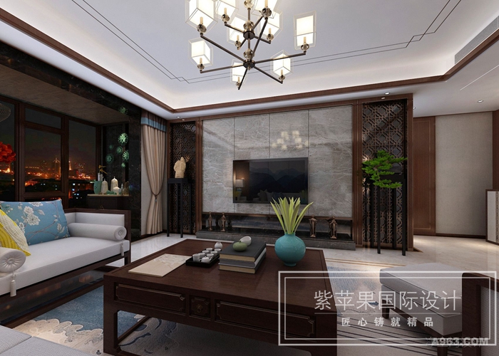 無錫紫蘋果裝飾新中式裝修效果圖案例賞析: