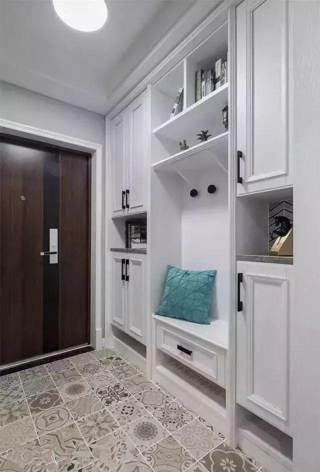 那么家里沒有玄關(guān)的戶型,要怎么補救?這個要分兩種情況,如果進門空間比較緊湊,那就想方法放個鞋柜,實現(xiàn)收納功能,如果進門空間充足,就可以設(shè)置一個隔斷,實現(xiàn)玄關(guān)區(qū)的獨立。