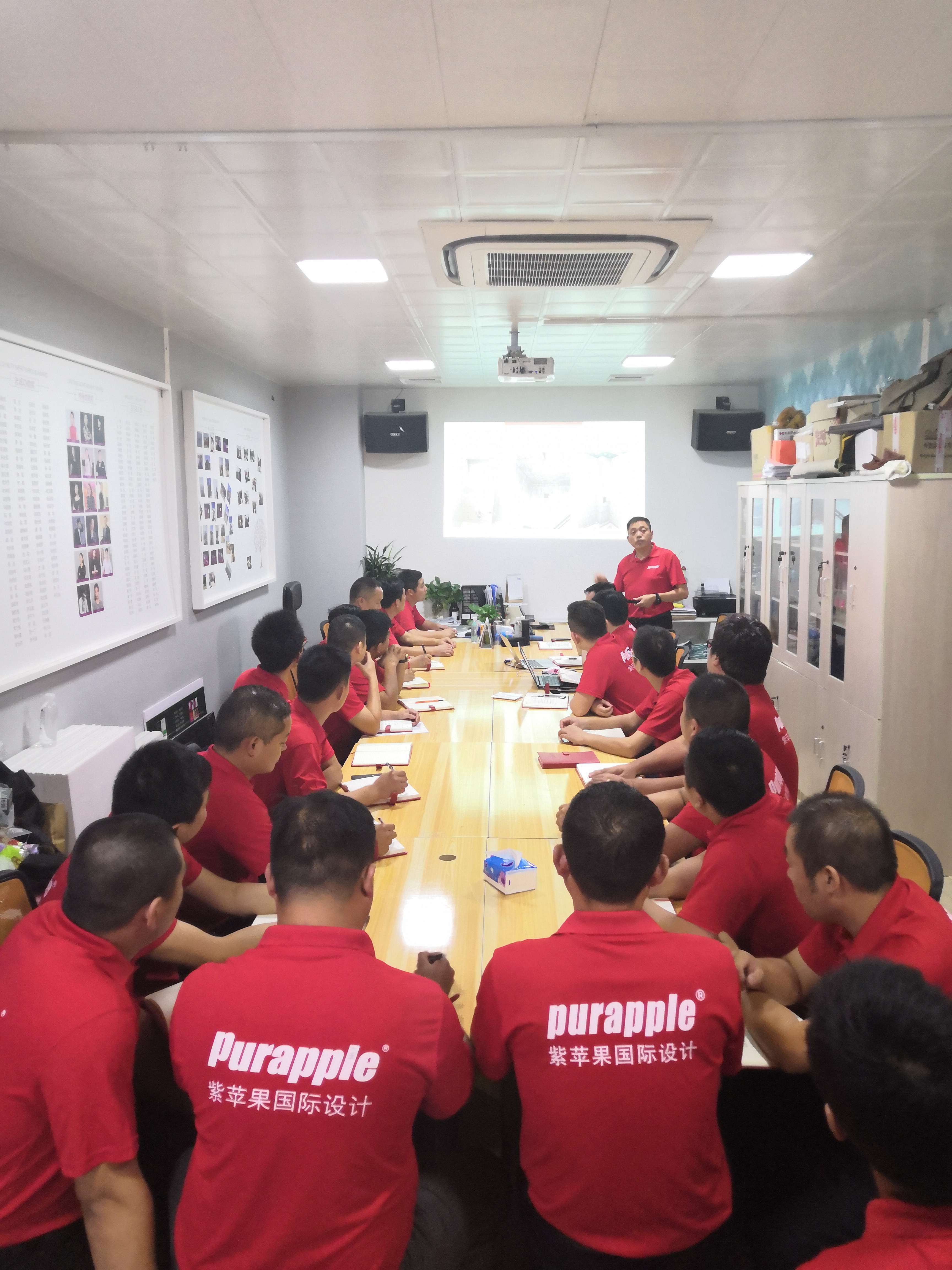 公司整隊,大家喊著齊刷刷的紫蘋果的專屬口號鼓舞士氣