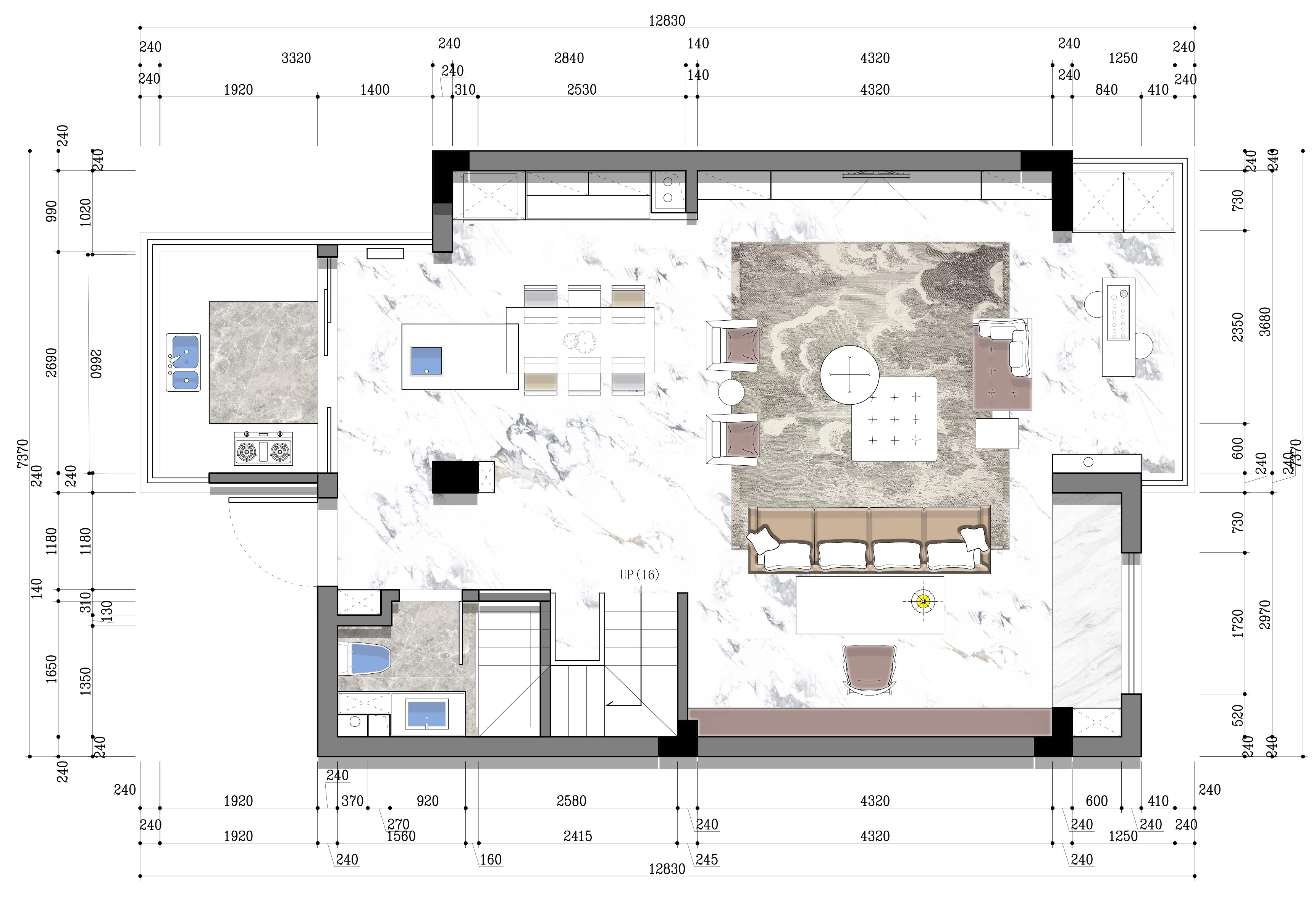 兩套方案一樓品質(zhì)感都挺高的,不保留房間,廚房衛(wèi)生問客餐廳,來加長島臺,試問不是那哪個人心中的夢中情房!