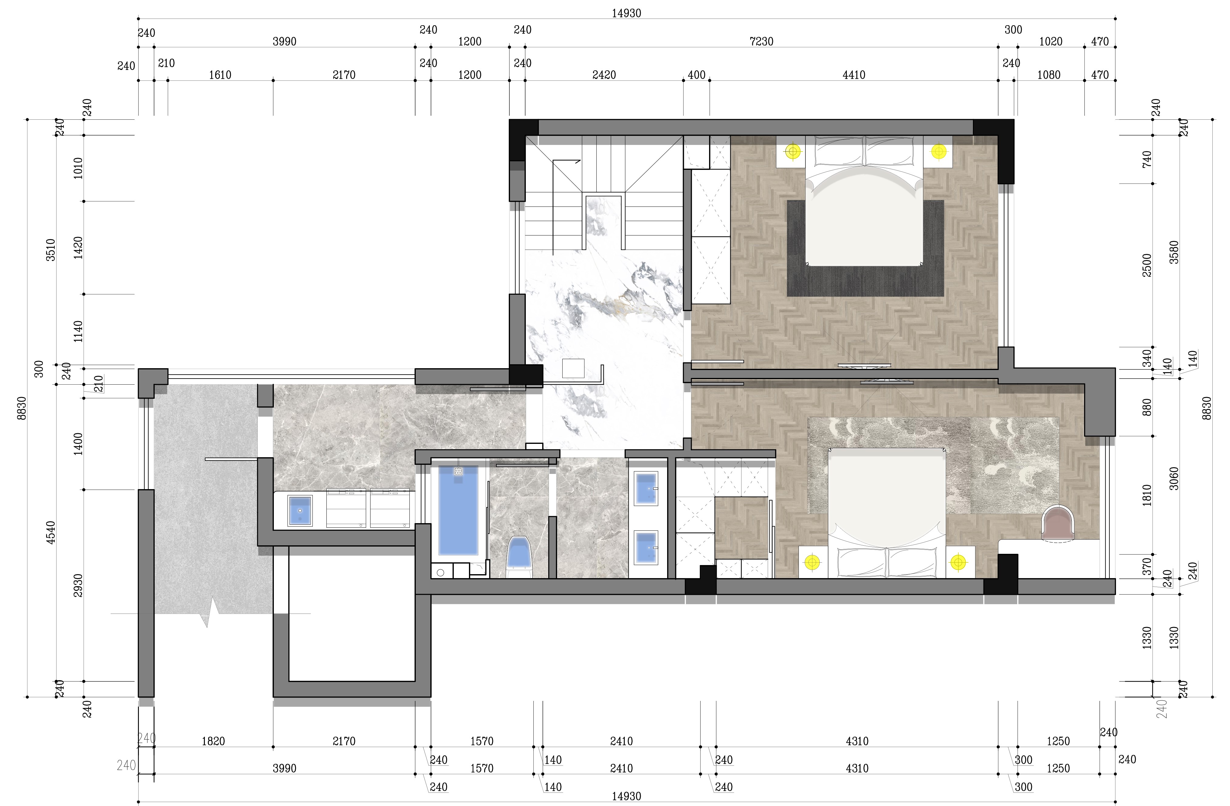 二樓還不確定到底能不能外擴,開發(fā)商和業(yè)主正在商量,別墅裝修,所以我們保守起見,裝修設(shè)計