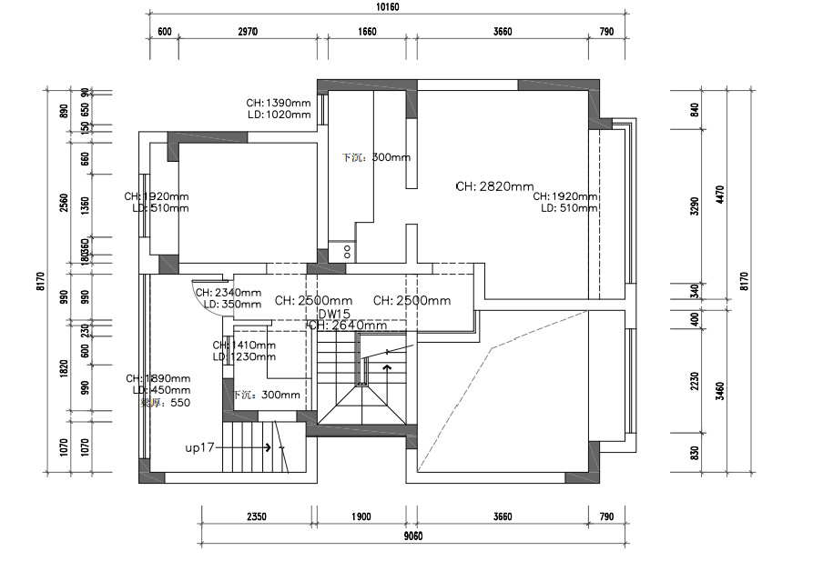 別墅裝修①一層的原始空問過于零碎,設(shè)計(jì)師將衛(wèi)生間外拓,讓北邊空間整齊方正,樓梯太過狹窄,重新規(guī)劃了尺寸,行走更加舒服,陽臺(tái)打通,連在一起的客餐,客廳對(duì)面做了一個(gè)開放式書房。