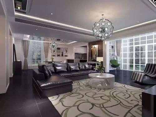 3.層次型,這種吊頂方式是將吊頂加厚,可以形成兩個(gè)明顯的層次,無錫紫蘋果別墅裝修設(shè)計(jì)公司需要提醒業(yè)主這種方式比較適合層高比較寬裕的客廳裝修,但有一點(diǎn)是需要注意的,就是要注意四周吊頂?shù)脑煨驮O(shè)計(jì)。