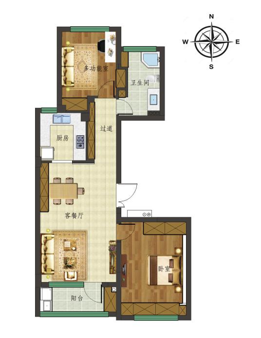 戶型效果圖:這個戶型大家可以看出來并不是很多,確實它只有2300px,但是相信大家可以從戶型圖中看出設計師還是將很多東西設計的很微妙。那么我們再來看看設計效果圖吧,從里面你可以發(fā)現(xiàn)更多很棒的設計感和微妙元素在里面。