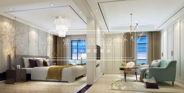 設(shè)計(jì)師運(yùn)用現(xiàn)代造型與傳統(tǒng)中式相結(jié)合的語言,總體布局采用了傳統(tǒng)對(duì)稱式的布局方式,沉重內(nèi)斂。