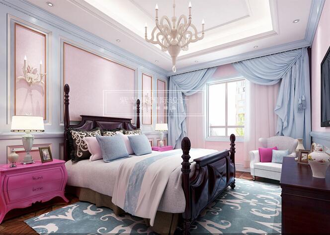 漫步到主臥的瞬間,濃濃的少女粉迎面而來,初戀般的感覺涌上心頭,看那粉色和藍(lán)色的對比色不失穩(wěn)重,更凸顯了高貴。也更是體現(xiàn)了男主和女主人之間的甜蜜愛情,天長地久。
