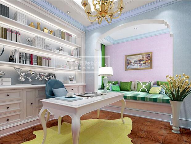 再轉(zhuǎn)角一瞥便是,書香濃濃的書房。書房是智慧和安靜的圣域,白色,海藍(lán)色,深色地板的搭配,讓人很快的安靜下來去融入書海中,猶如身臨其境,體驗(yàn)在書海中暢游的樂趣,累了可以有個(gè)軟包沙發(fā)小息片刻。