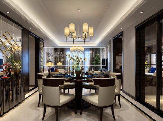 餐廳是家居生活的心臟,不僅要美觀,更重要的實用性,整體性。頂部做了簡單的吊頂和富有結(jié)構(gòu)感的吊燈以及家具。金屬的酒架和廚房通透,顯的開闊精致。空間和細節(jié)完美結(jié)合。
