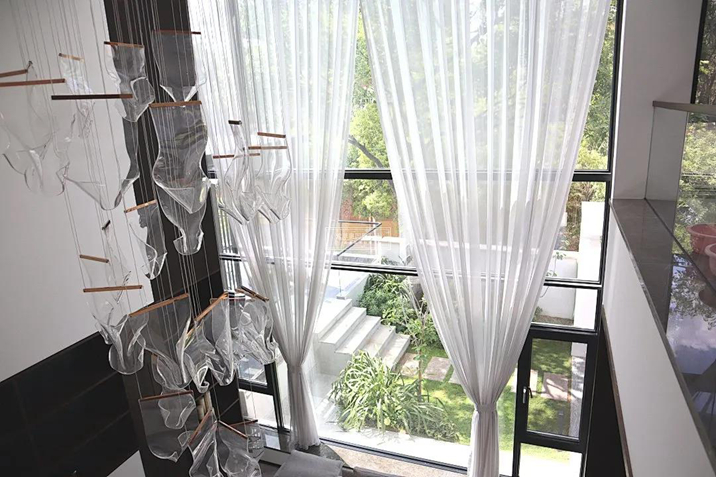 客廳本身的大挑空讓空間更有拉伸,參考行云流水的元素的精美吊燈打開(kāi)生活新的美學(xué)表達(dá)。