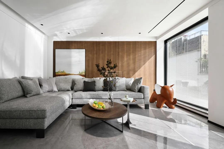 本案從外立面開(kāi)始,設(shè)計(jì)師就做了很多的規(guī)劃,盡量統(tǒng)一整體外觀,保持簡(jiǎn)約大氣,結(jié)合實(shí)際功能配合觀光電梯入戶,把利落線條運(yùn)用到極致。